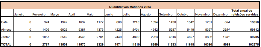 Quantitativo mensal de refeições servidas: