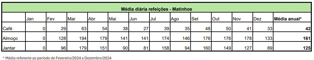 Média diária de refeições servidas: